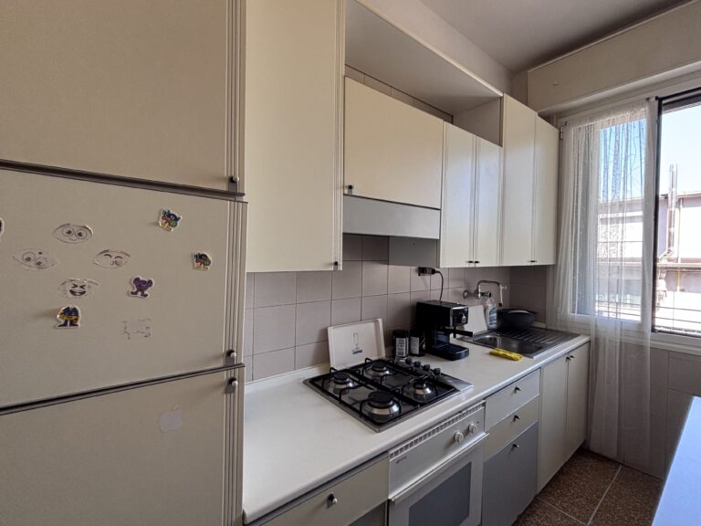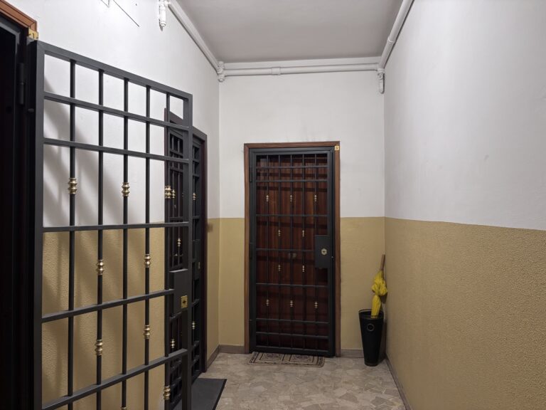L’appartamento è al primo piano di cinque ed è dotato di ascensore. Il fabbricato, la cui facciata è in pietra a vista, si presenta in buone condizioni.