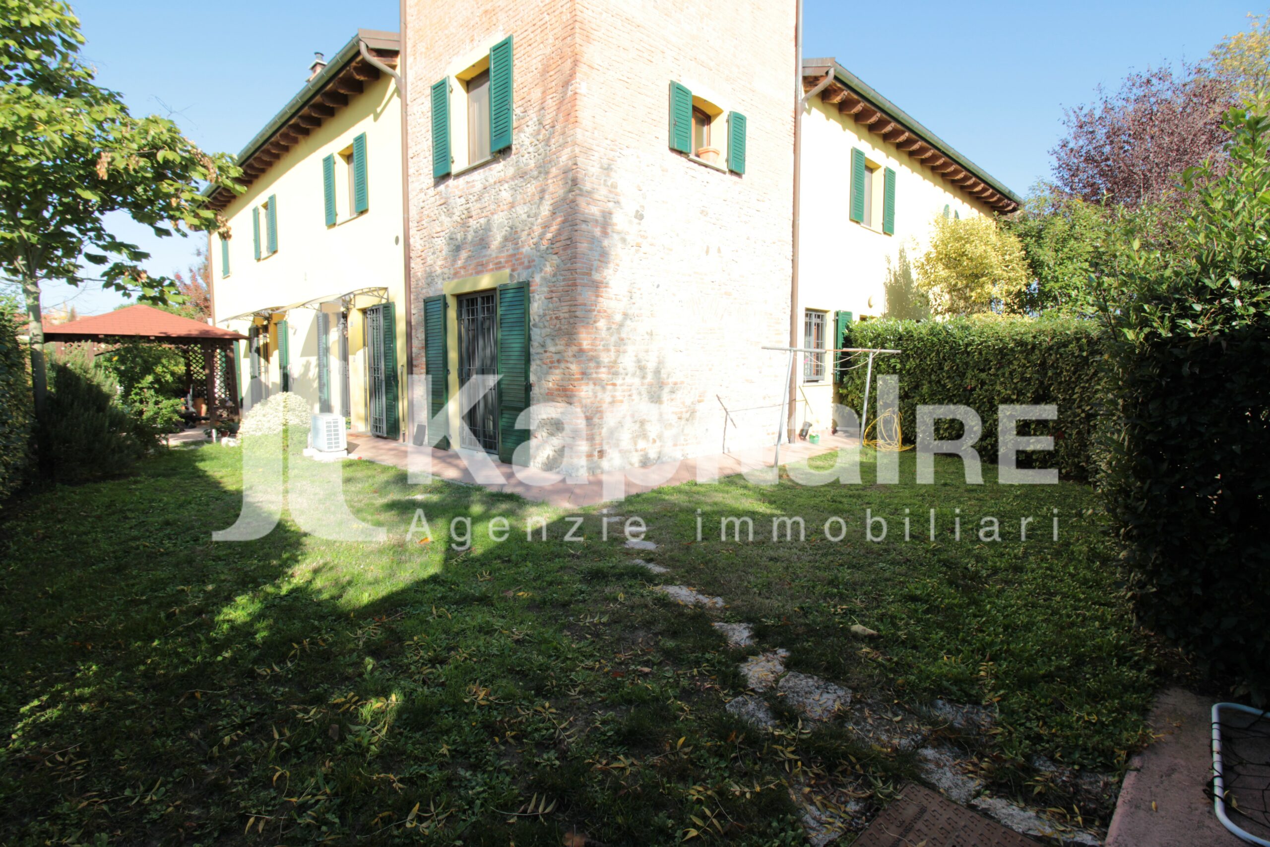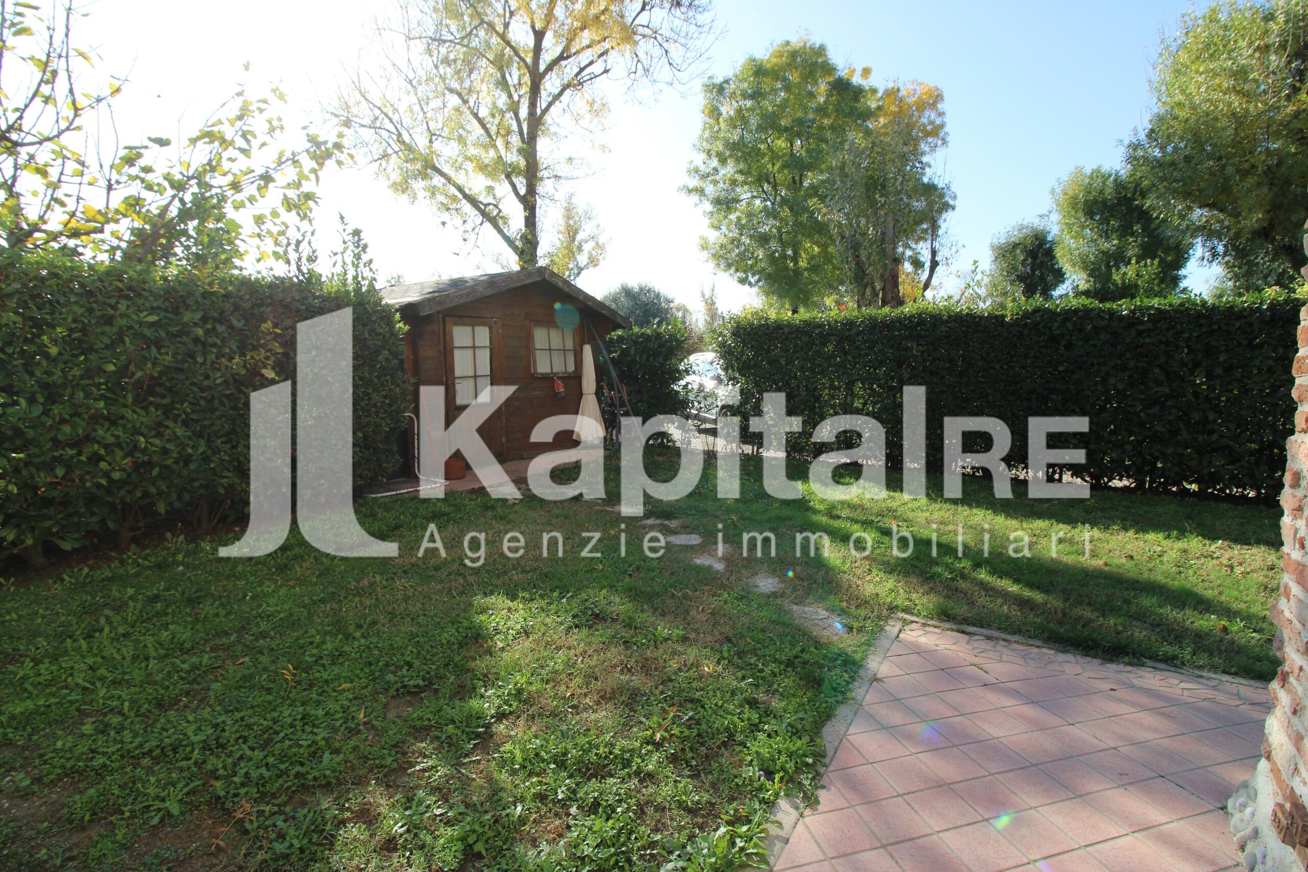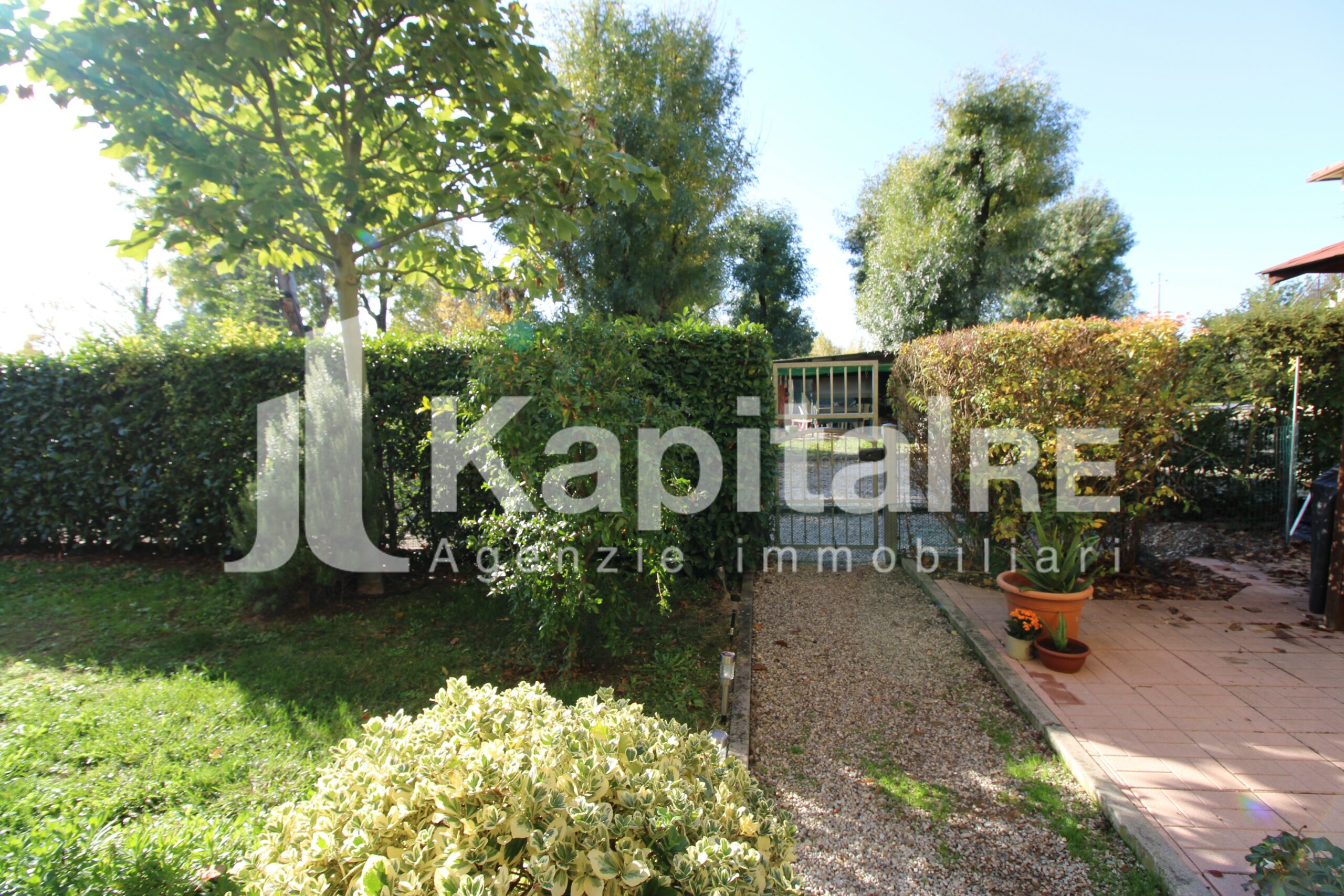 Il giardino privato di cc. mq. 200 che costeggia i 2 lati dell’abitazione è completamente piantumato e con annessa la siepe per avere ancora più privacy. Completano la proprietà 2 POSTI AUTO nella corte comune.