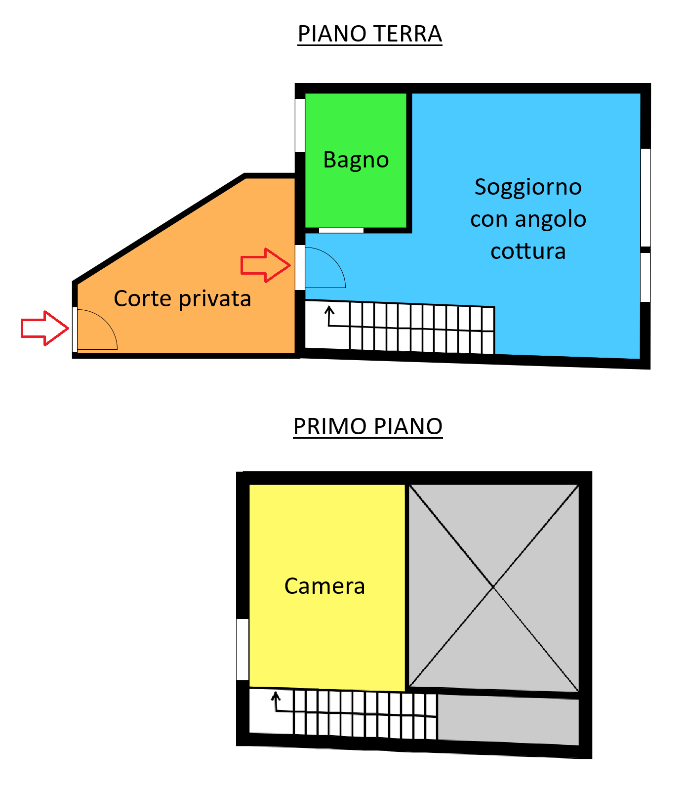 L’ingresso indipendente si apre sul giardino privato, uno spazio raro e riservato in pieno centro, ideale per vivere momenti di relax all’aperto. Al piano terra si sviluppa un ampio salone con cucina a vista, impreziosito da una grande finestra Velux che inonda l’ambiente di luce naturale ed esalta la doppia altezza del living. Completa il livello un bagno finestrato dalle finiture moderne ed eleganti.