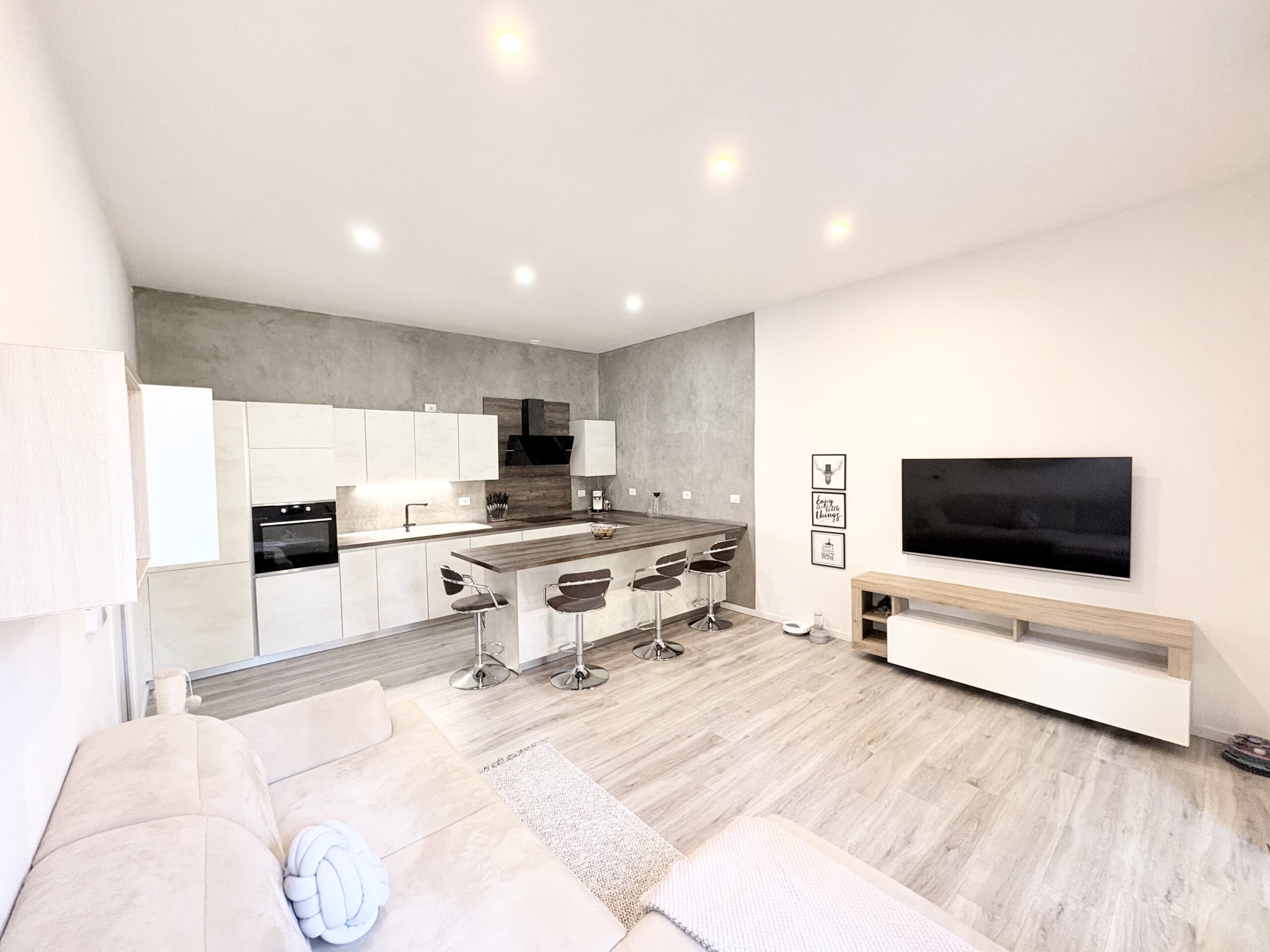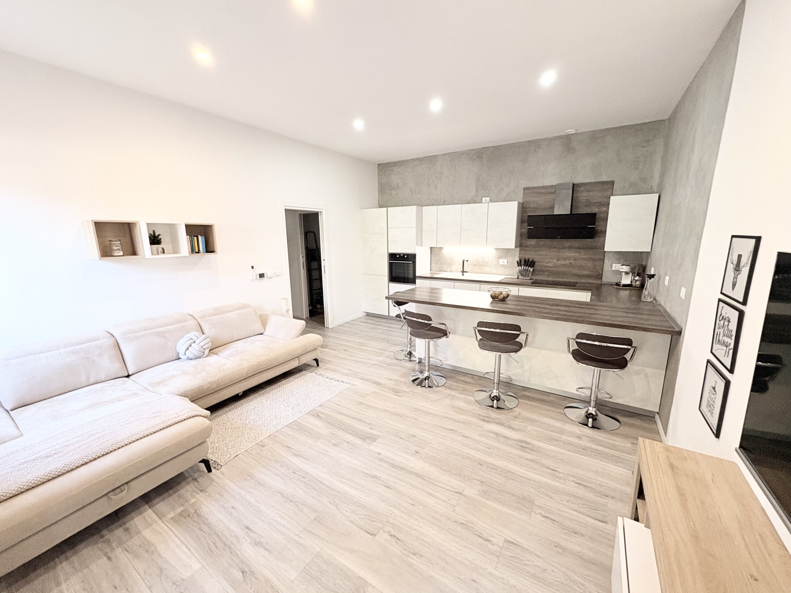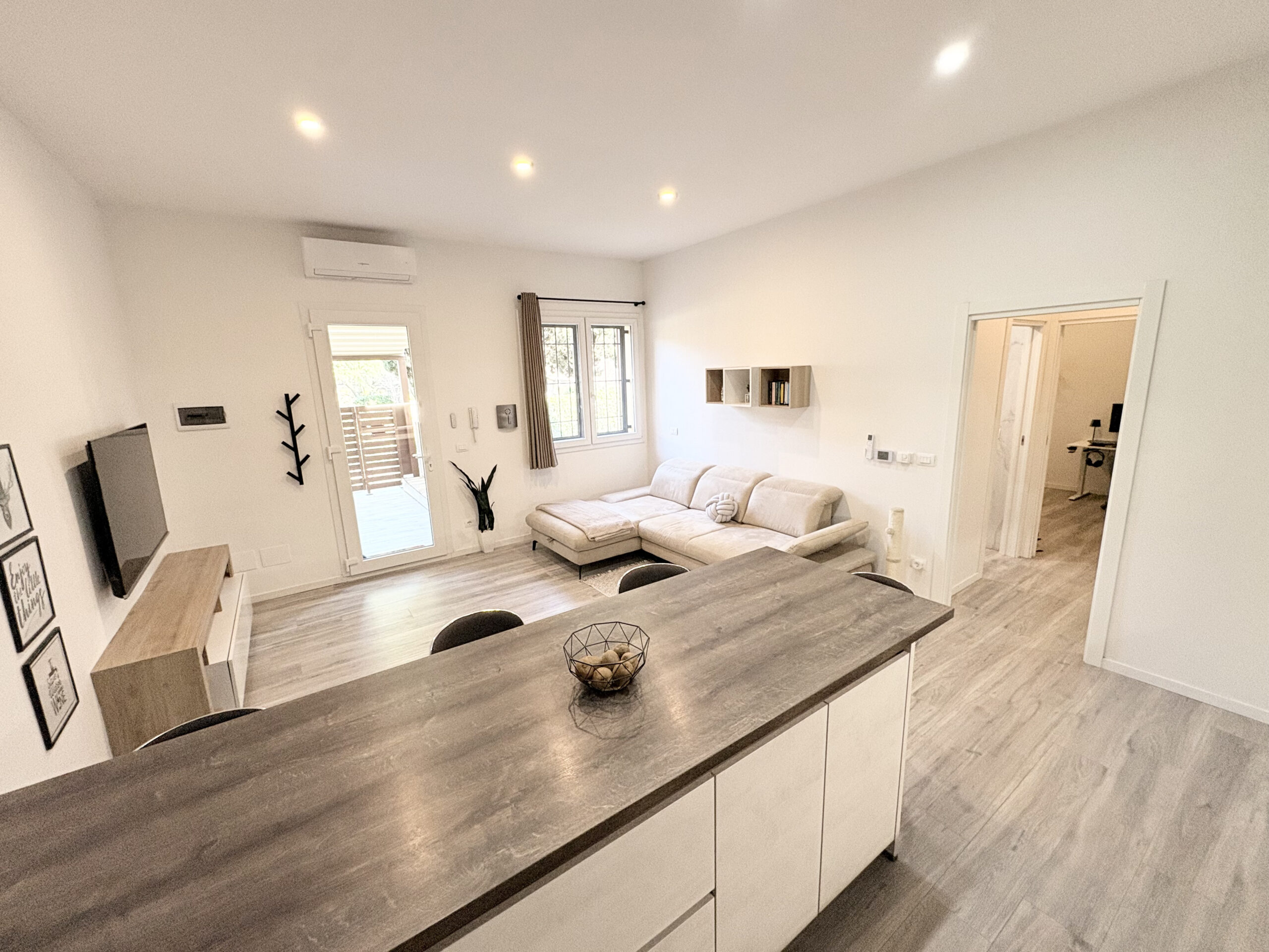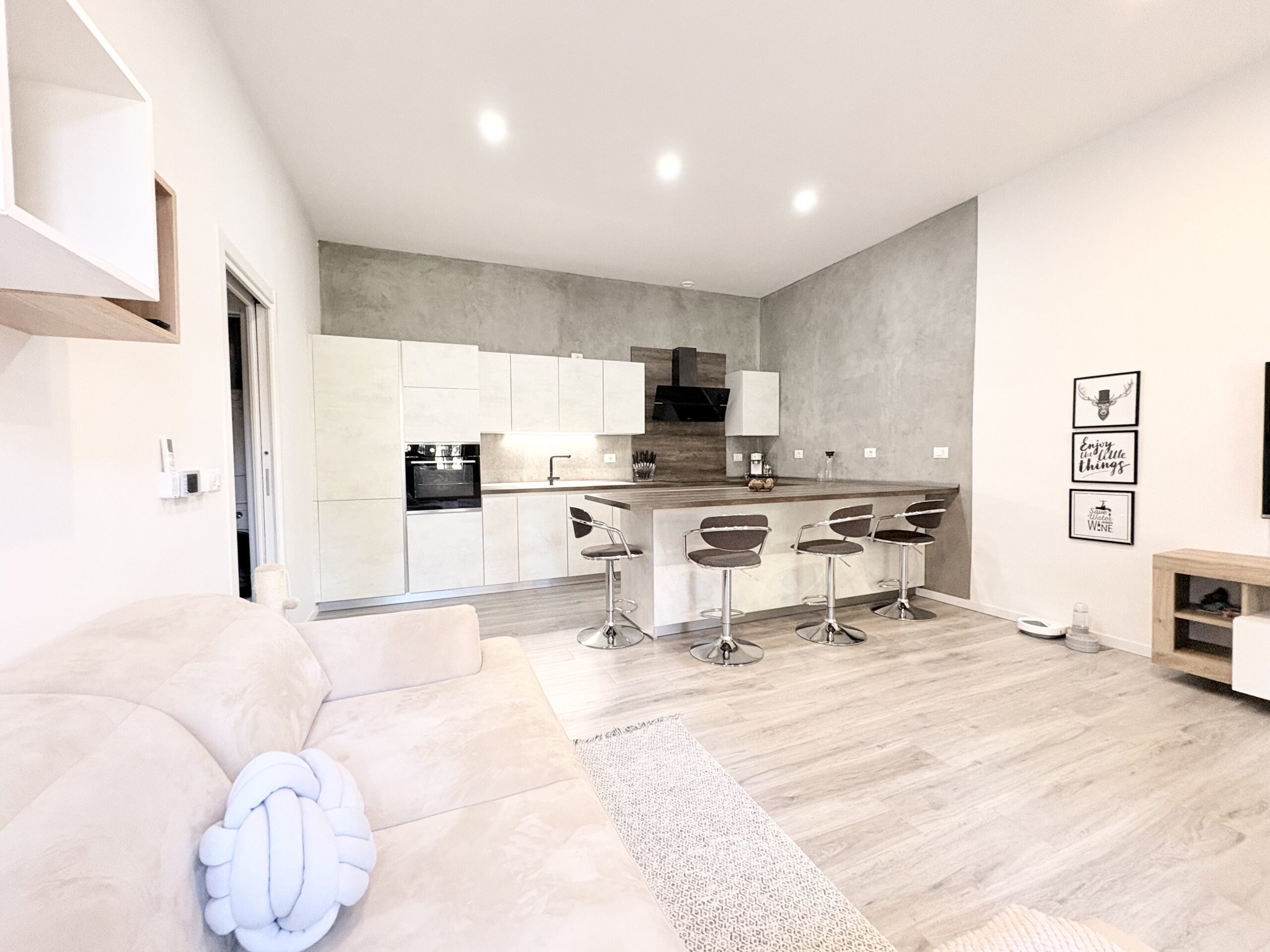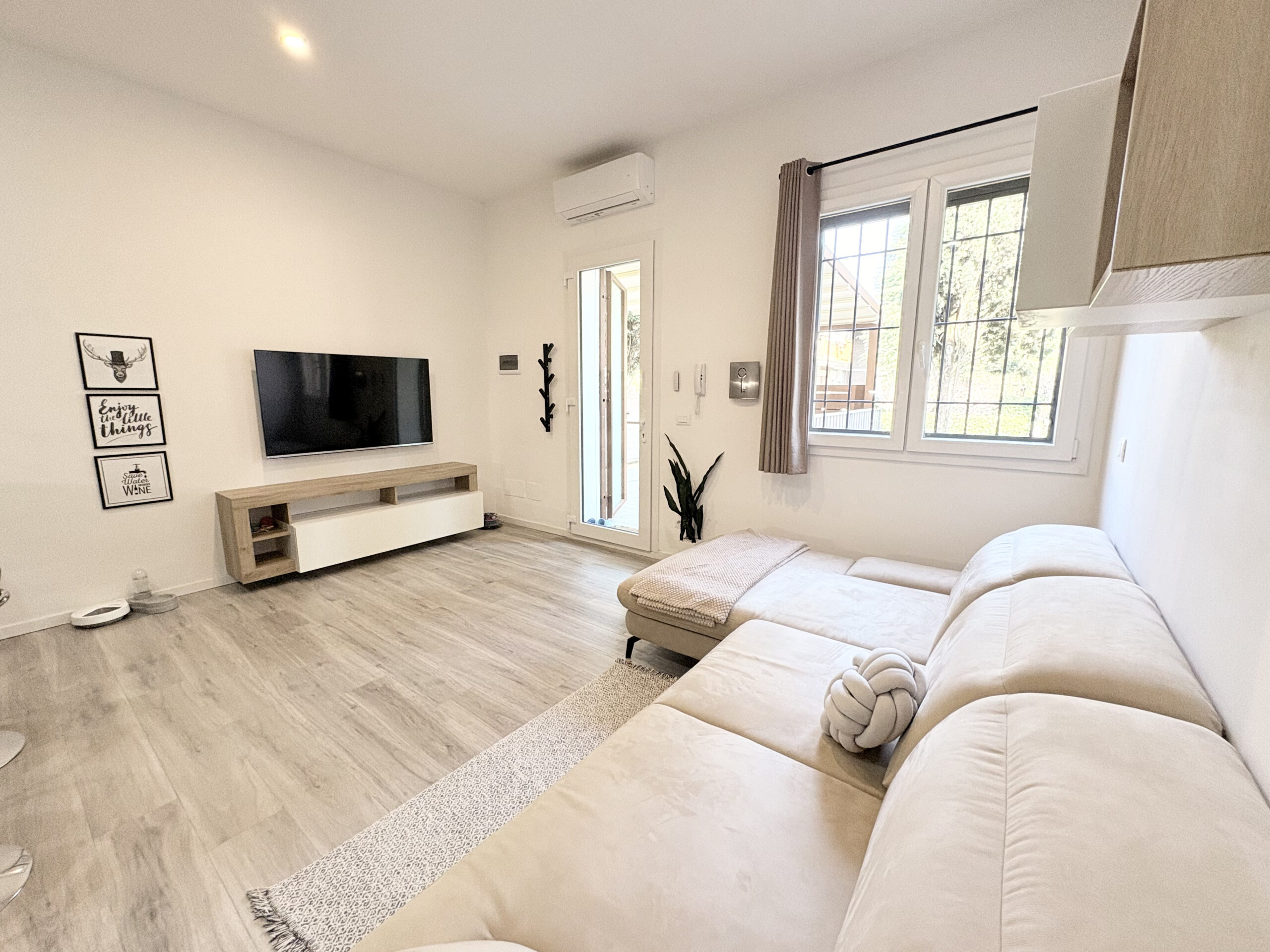 Via Nazionale, all’altezza di via del Lavoro, in stabile ben tenuto, abbiamo preso in vendita un grazioso appartamento ideale per una coppia. Appartamento completamente ristrutturato nel 2021, davvero molto ben rifinito, curato in ogni dettaglio, compreso di arredo visibile in foto. Aspetti unici e caratteristici dell’immobile sono: avere una piccola corte di proprietà antistante l’ingresso che è indipendente al piano terreno, le bassissime spese condominiali e la completa ristrutturazione dell’appartamento con materiali e soluzioni impattanti in maniera positiva sul risparmio energetico. Riscaldamento autonomo a pavimento, con caldaia a condensazione, infissi in pvc con vetrocamera, cancelletti e impianto di climatizzazione con due split. Si compone di ampia zona giorno con parete cottura, disimpegno notte con pratico e capiente ripostiglio dove è stata posizionata la zona lavanderia, camera matrimoniale con spaziosa cabina armadio e bagno finestrato con box doccia. All’interrato, posto auto coperto e chiuso da basculante automatico. Libero anche subito.
