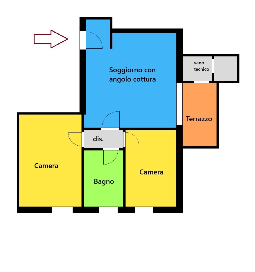L’immobile è composto da una zona giorno con angolo cottura ed accesso ud uno spazioso terrazzo con una bella vista sul verde circostante, una camera matrimoniale, una camera singola ed un bagno finestrato.