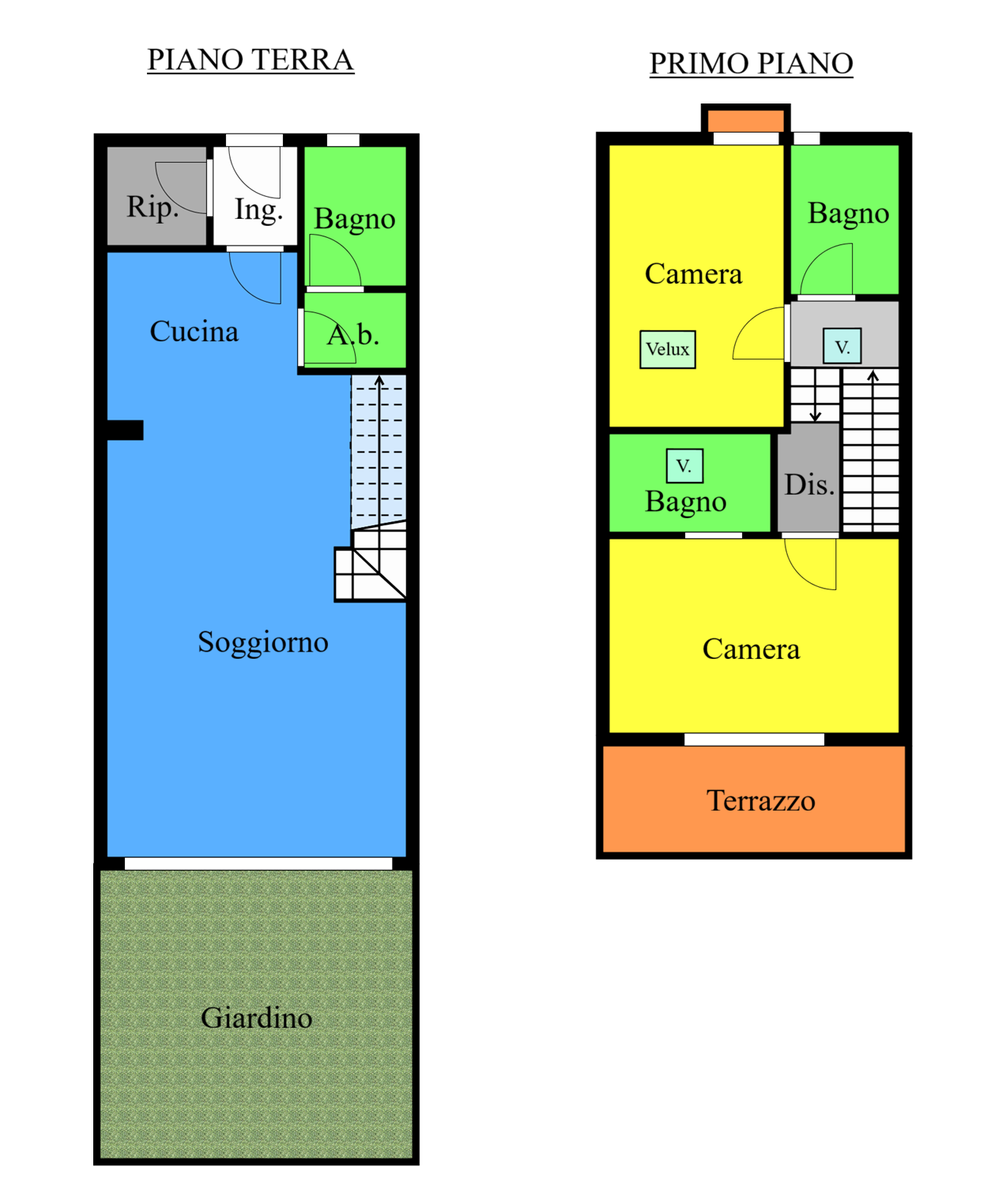 [U01.02.03] Questa soluzione si sviluppa su due livelli fuori terra. Il pian terreno è dedicato per intero alla zona giorno: ampio open-space di 40 mq con cucina a vista ed accesso al giardino privato. A servizio del piano troviamo un bagno, una lavanderia ed un deposito/ripostiglio. Al piano superiore troviamo due ampie camere, di cui la padronale con bagno e terrazzo pertinenziali, ed un ulteriore servizio.