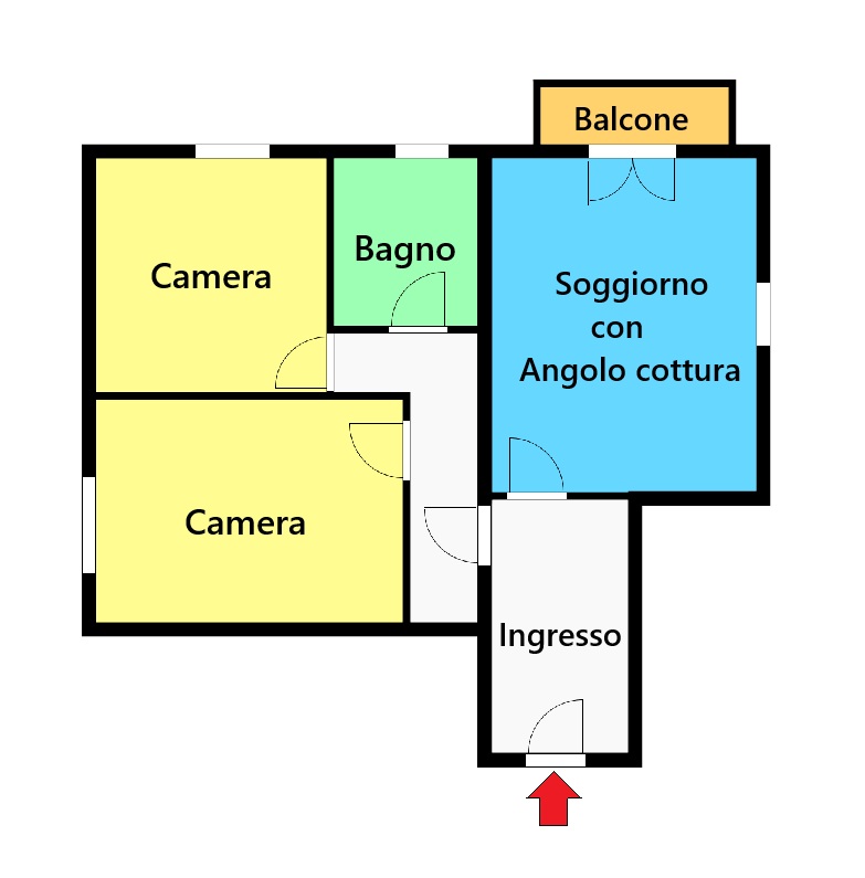 Nella zona giorno troviamo l’ingresso da cui si accede ad un luminoso soggiorno con angolo cottura, un ambiente conviviale che si affaccia direttamente sul balcone. La zona notte è composta da due ampie camere matrimoniali, spaziose e facili da arredare, servite da un bagno finestrato mantenuto in ottime condizioni.