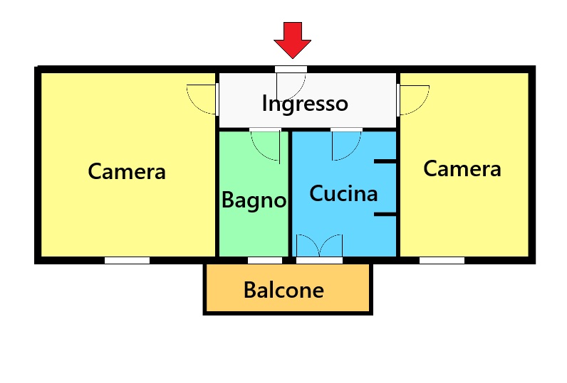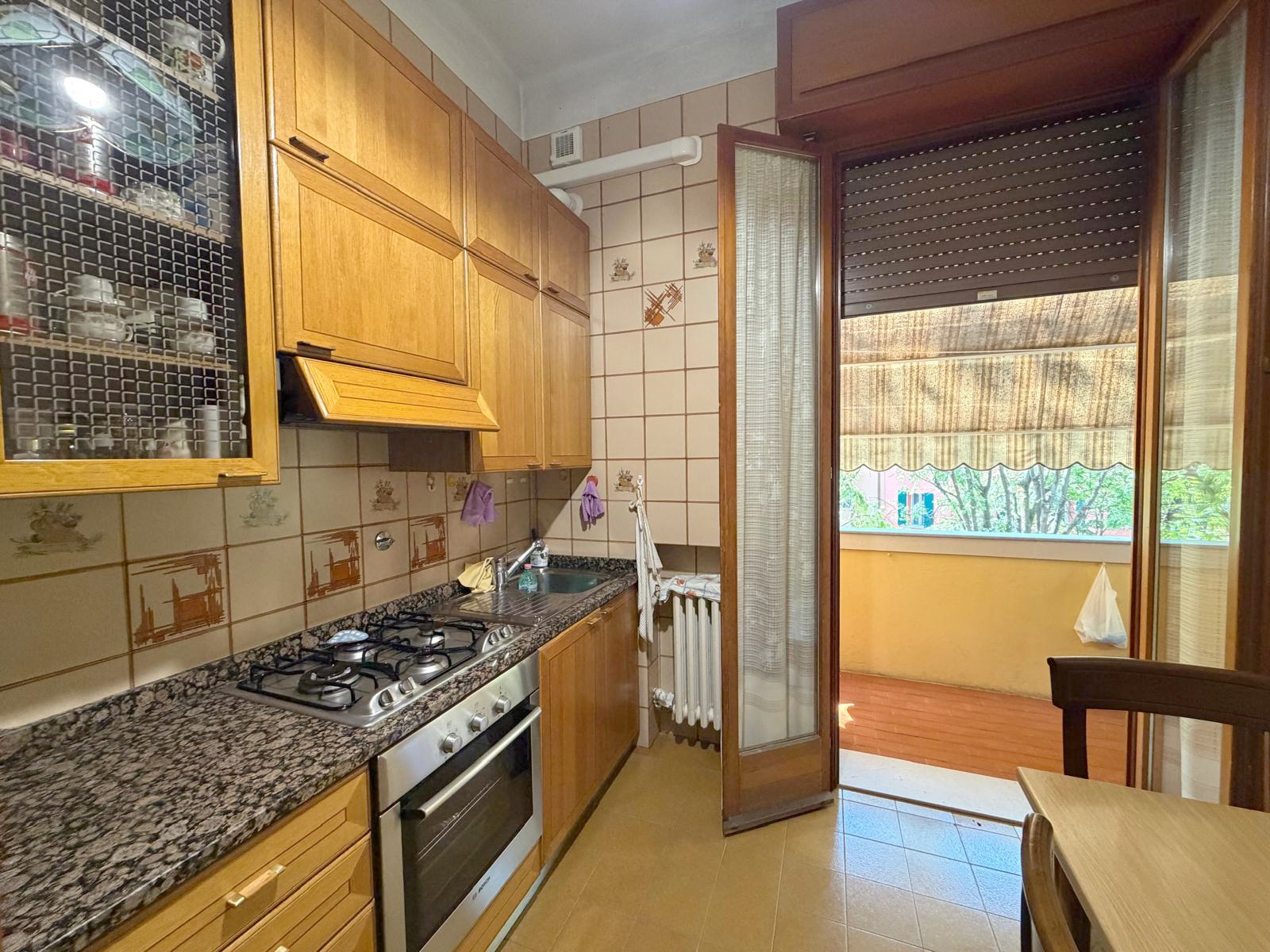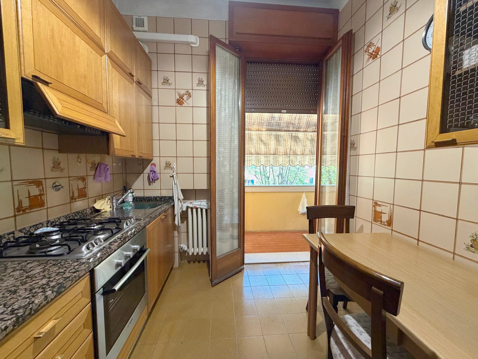 Ampio trilocale zona Murri, ingresso arredabile, cucina abitabile con accesso al balcone, camera, bagno e sala.