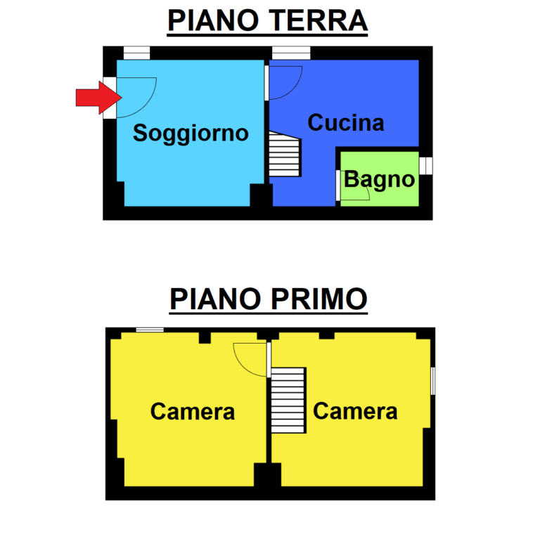 Al piano terra ingresso su soggiorno, cucina semiabitabile e bagno. Collegato da scala interna, al primo piano troviamo due camere da letto. Disponibile posto auto ad uso esclusivo