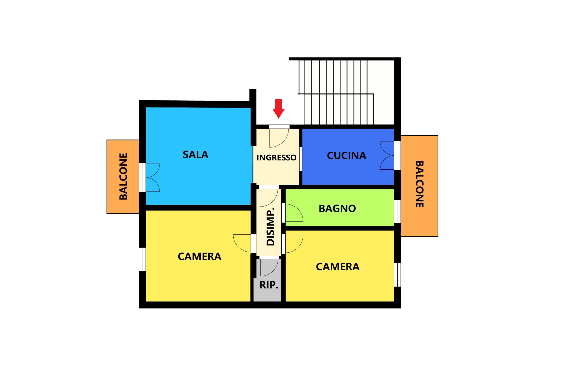CENTRO – In posizione centrale e comoda a tutti i servizi, in strada interna e riservata, proponiamo LUMINOSO appartamento con ottima esposizione, sito al secondo piano composto da ingresso arredabile, salone di 20mq con accesso al primo balcone, cucina abitabile separata con il secondo balcone, disimpegno notte, 2 camere da letto MATRIMONIALI (una da 13mq ed una da 18mq), bagno (completamente ristrutturato di recente, è dotato di sanitari sospesi, ampio box doccia, tapparelle motorizzate e finiture moderne) e completa la distribuzione interna un pratico ripostiglio.