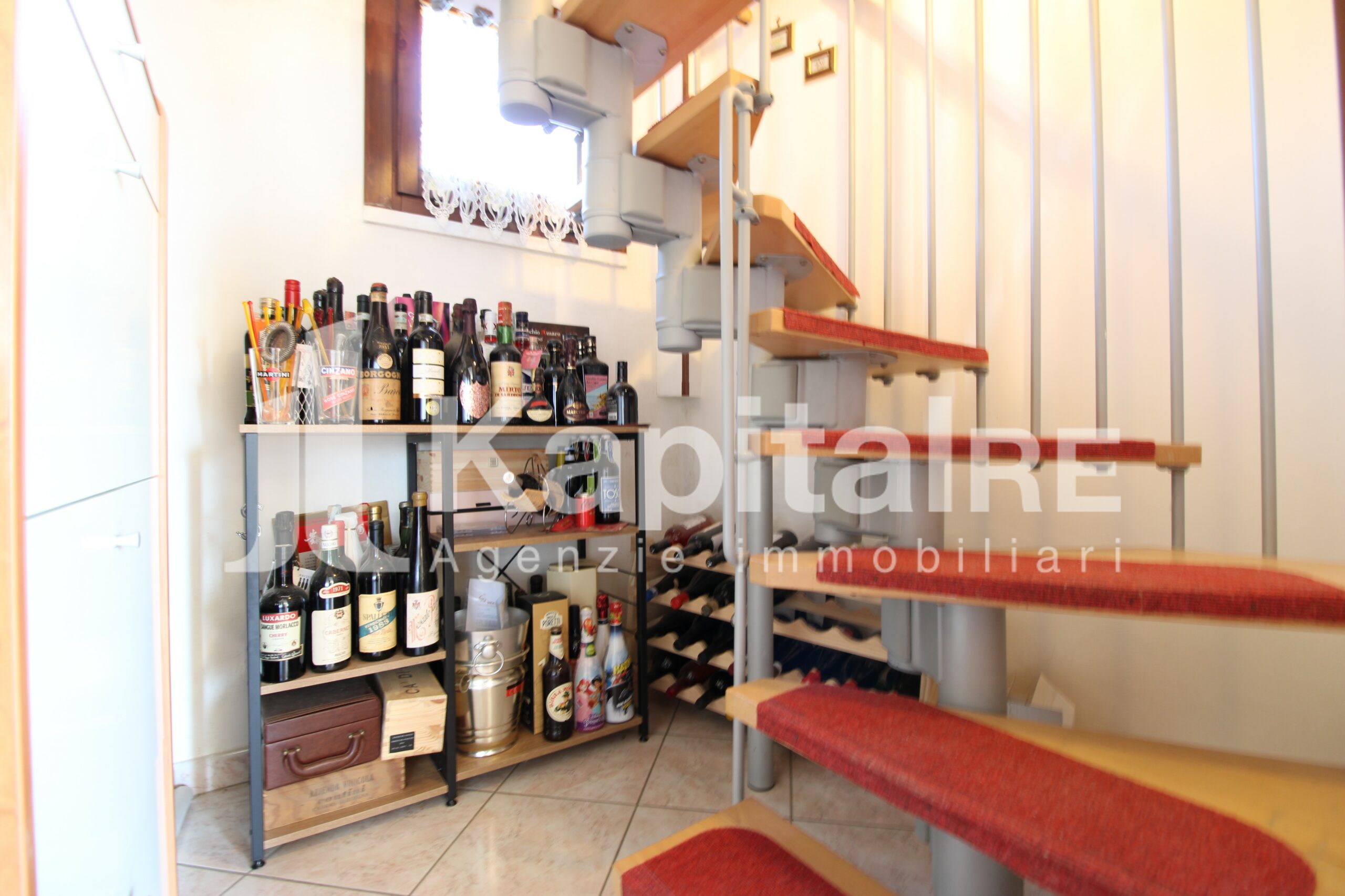 Caratteristica molto comoda e funzionale dell’immobile è la presenza di una confortevole scala che conduce direttamente alla cantina di 16 mq (arredata a tavernetta/3^ camera). La cantina, essendo al piano terra con entrata indipendente, regala massima privacy nel suo utilizzo.