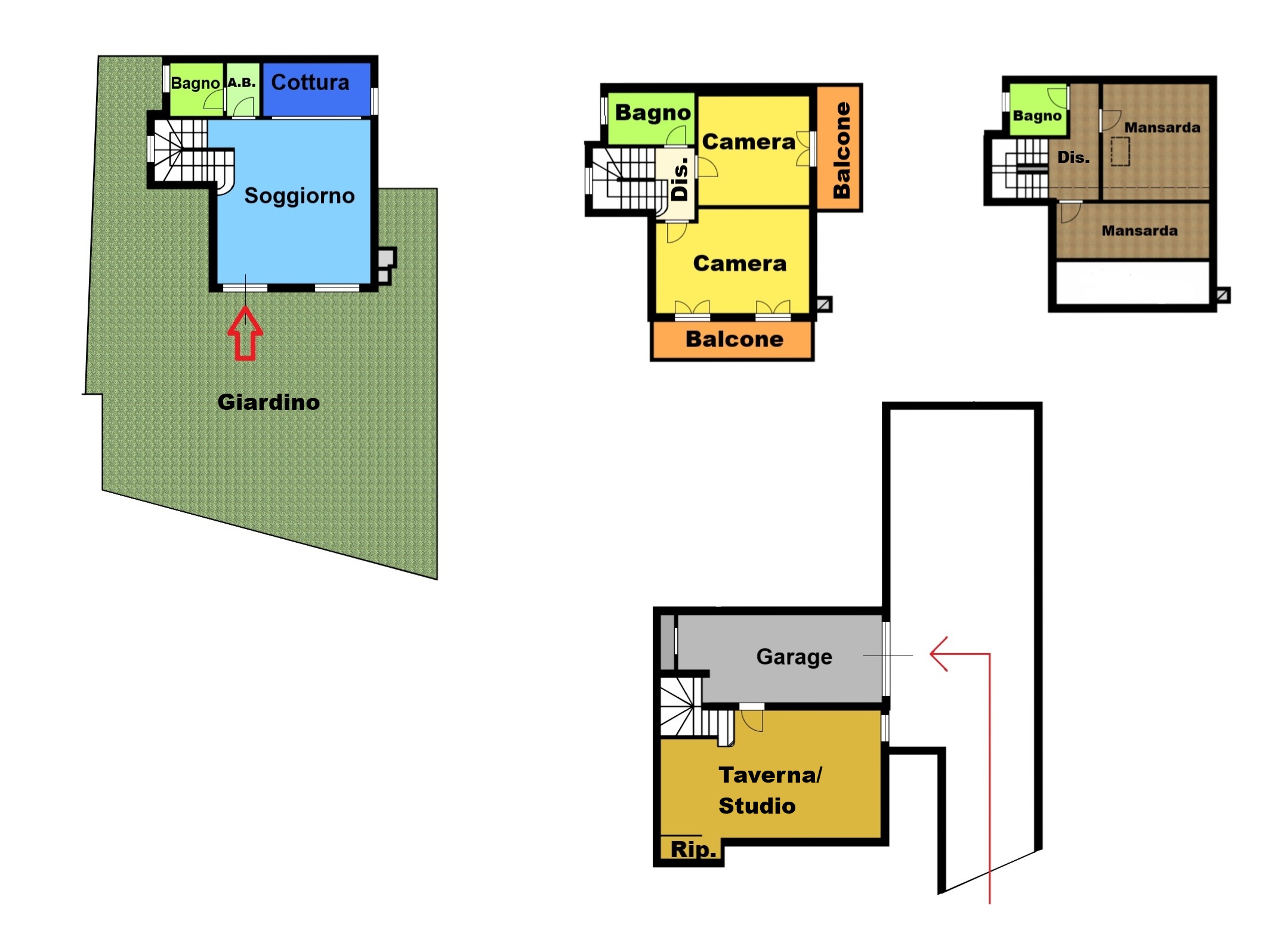 La proprietà di circa 140 mq si sviluppa su più piani ed è così composta: