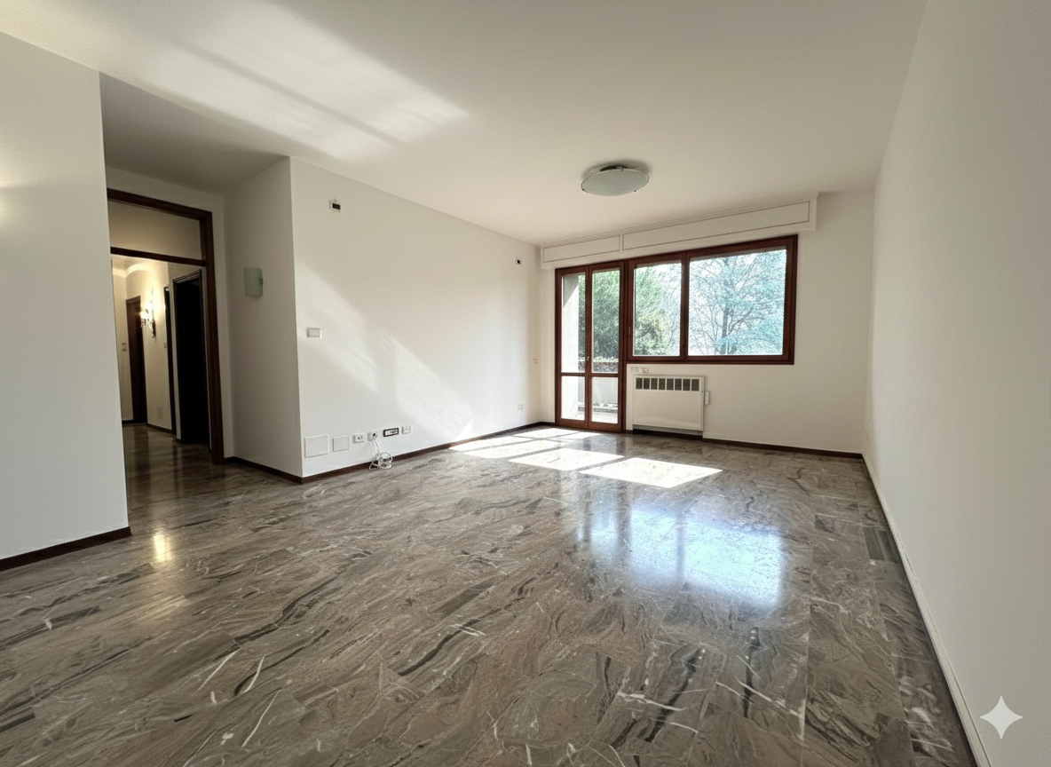 Un ampio e luminoso soggiorno, il cuore della casa, con accesso diretto a un balcone dove potrai goderti momenti di relax.
