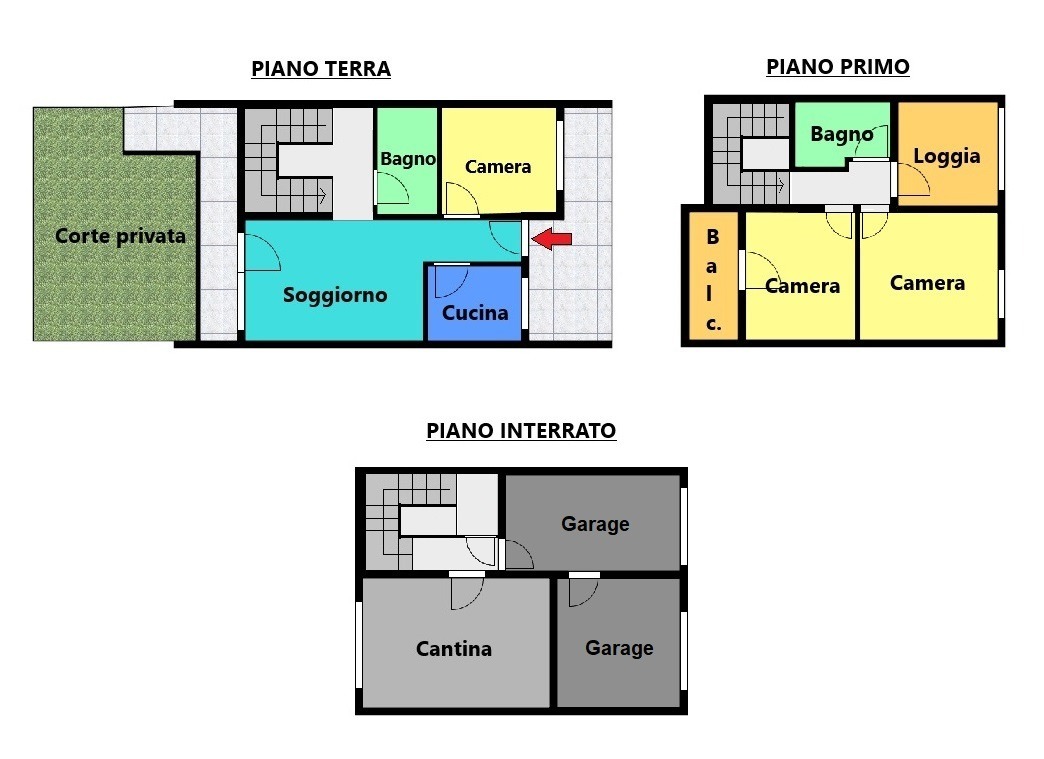 La villetta con ingresso indipendente è cosi composta: cucina abitabile, ampio soggiorno con accesso diretto al giardino, bagno e camera. Al piano primo troviamo 2 camere, una con il balcone, loggia e ampio bagno con balconcino. Finiture; pavimento in grès porcellanato, infissi in legno doppio vetro, inferriate, impianto aria condizionata. Completano l’immobile doppia autorimessa, cantina e giardino.
