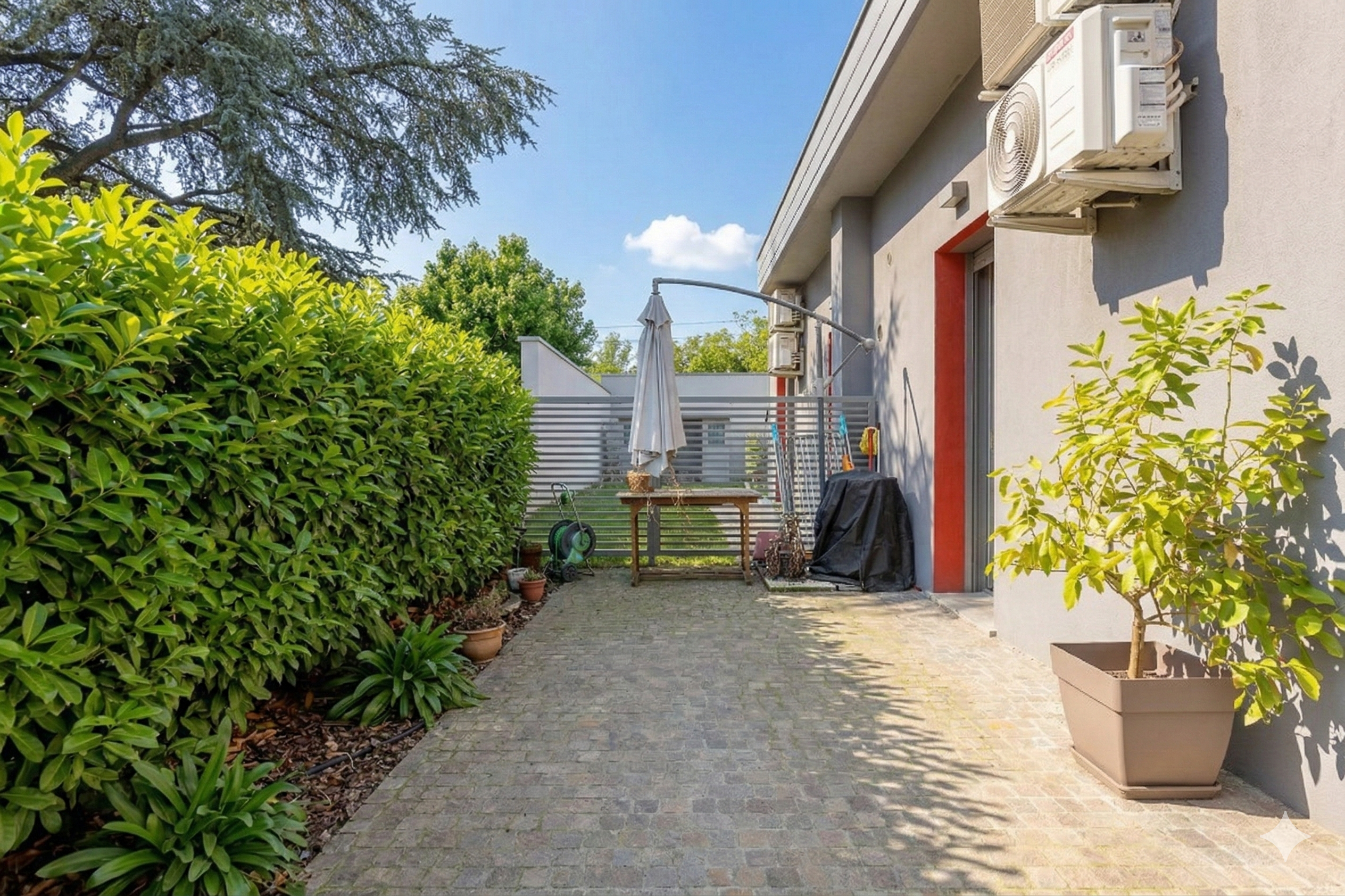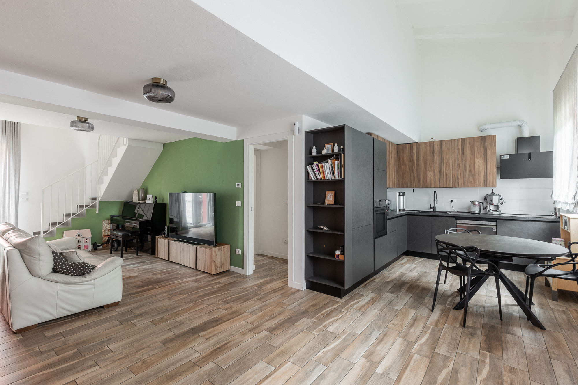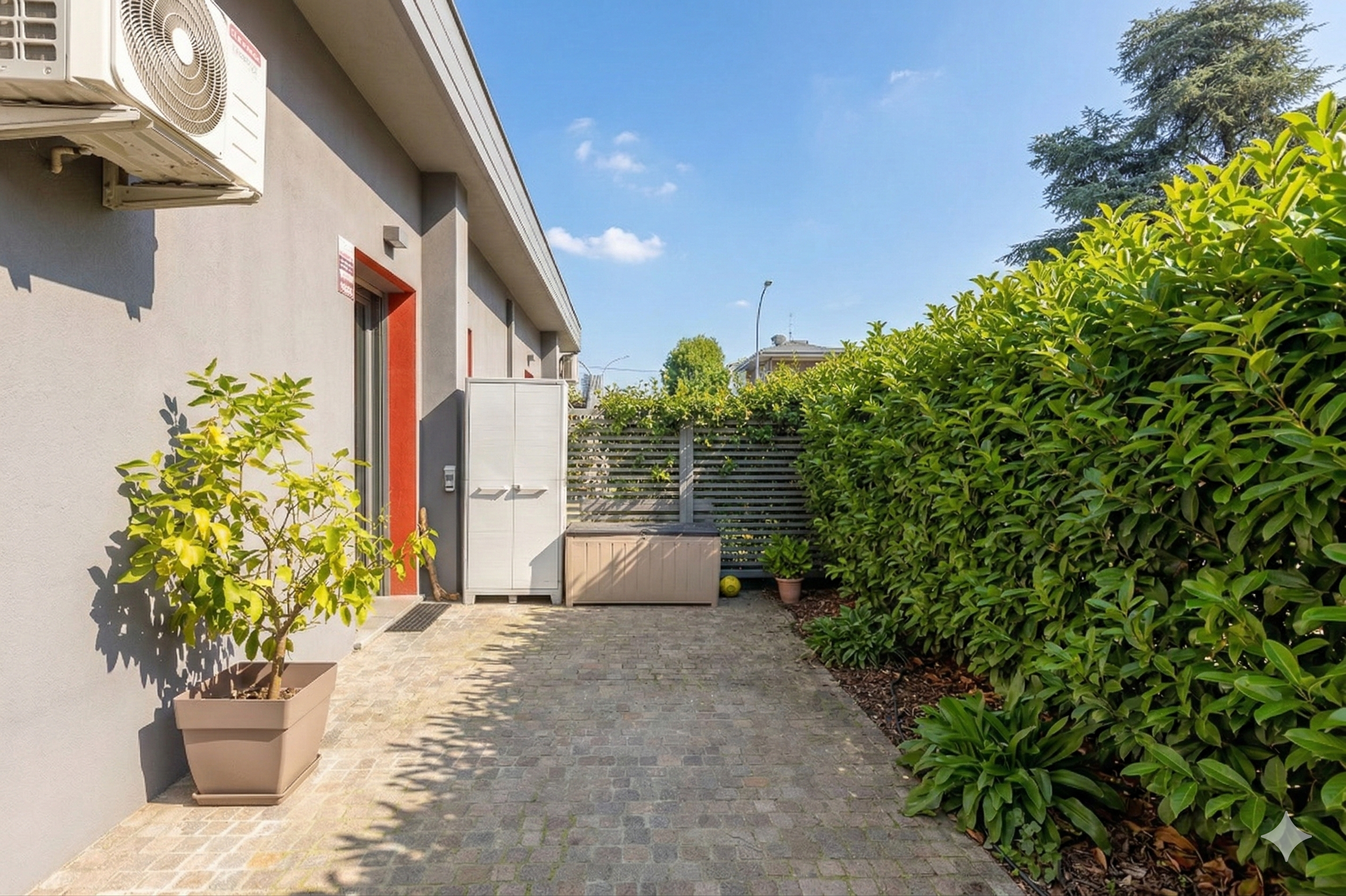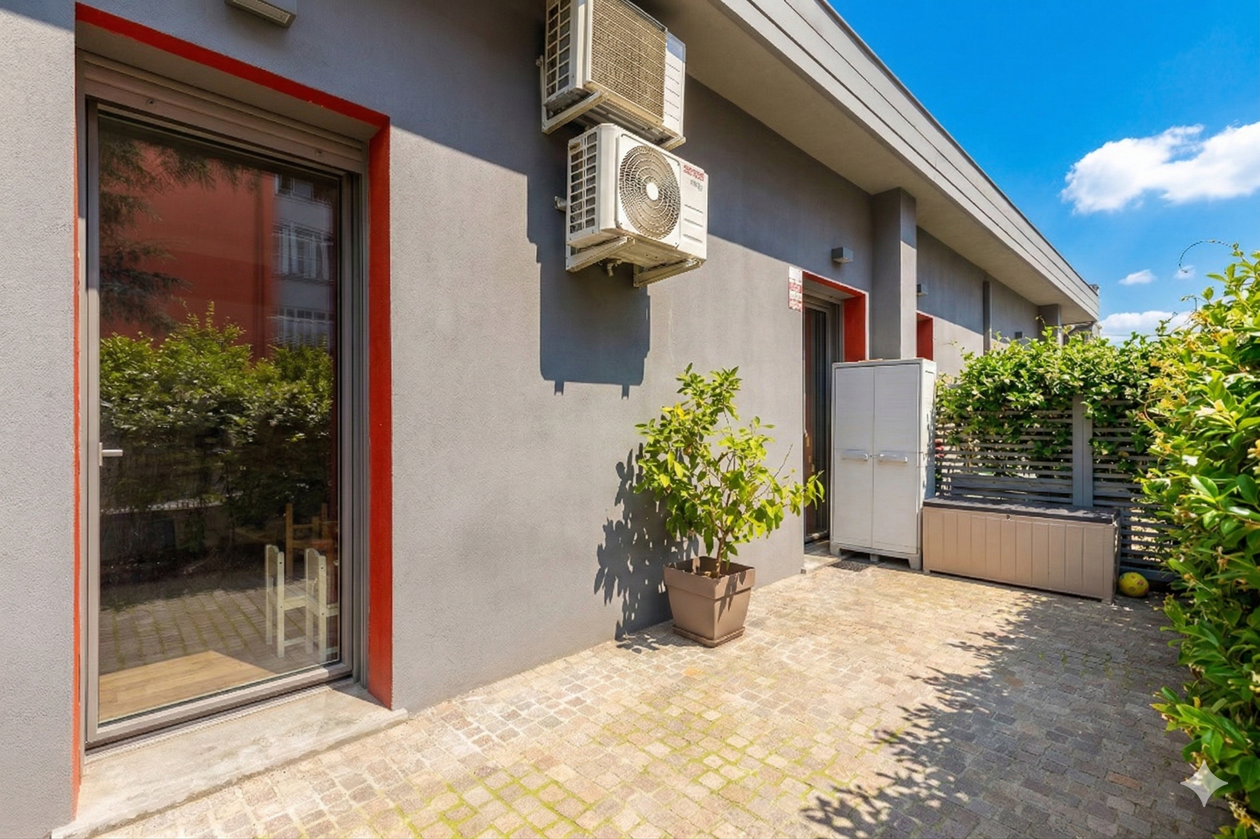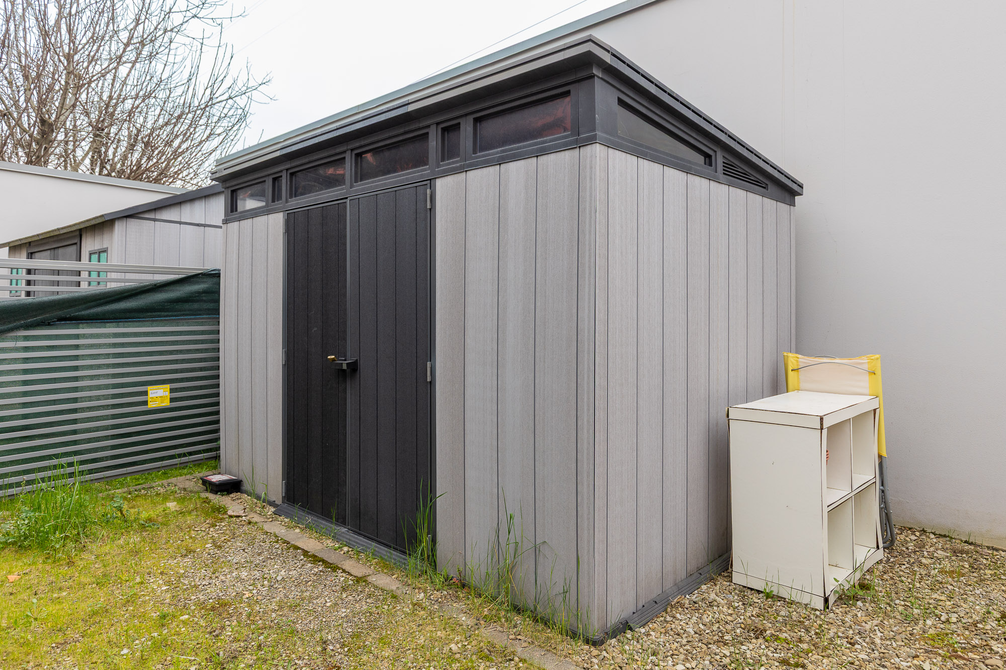 La casa è dotata di riscaldamento a pavimento, condizionatori con pompa di calore, tapparelle motorizzate e infissi in PVC con triplo vetro, per garantire un’elevata efficienza energetica e un ottimo isolamento termoacustico. All’interno dell’abitazione è presente anche un sistema di ottimizzazione della qualità dell’aria, che permette ai velux di aprirsi in automatico. Lo spazio cantina è utilizzato in una comoda casetta prefabbricata, ciclabile. Una soluzione moderna e funzionale, pronta da abitare.