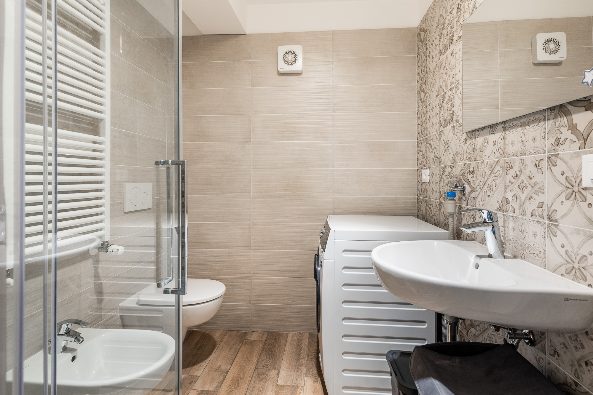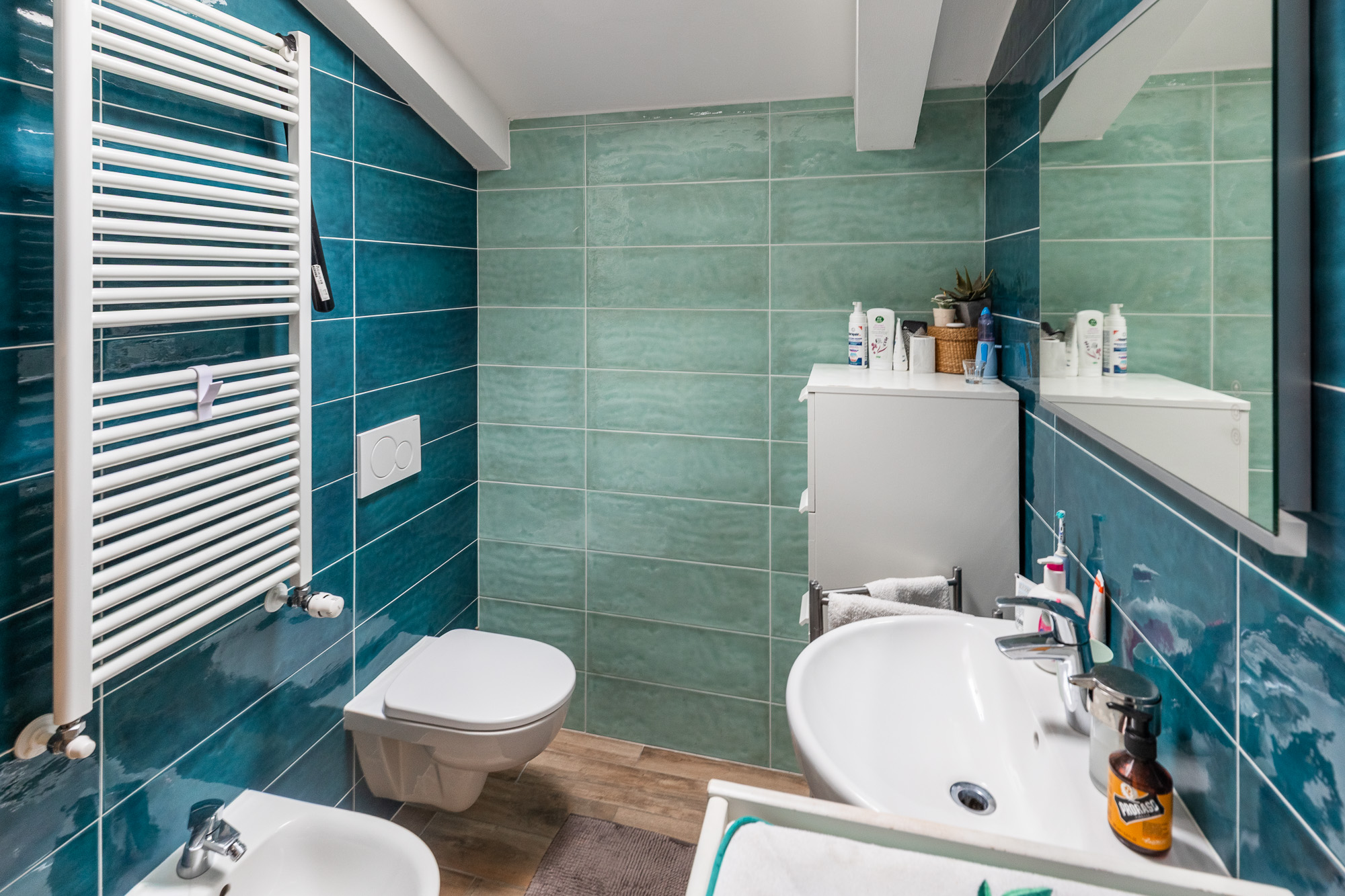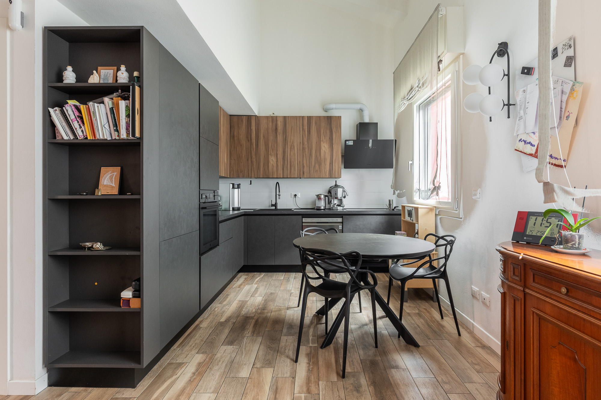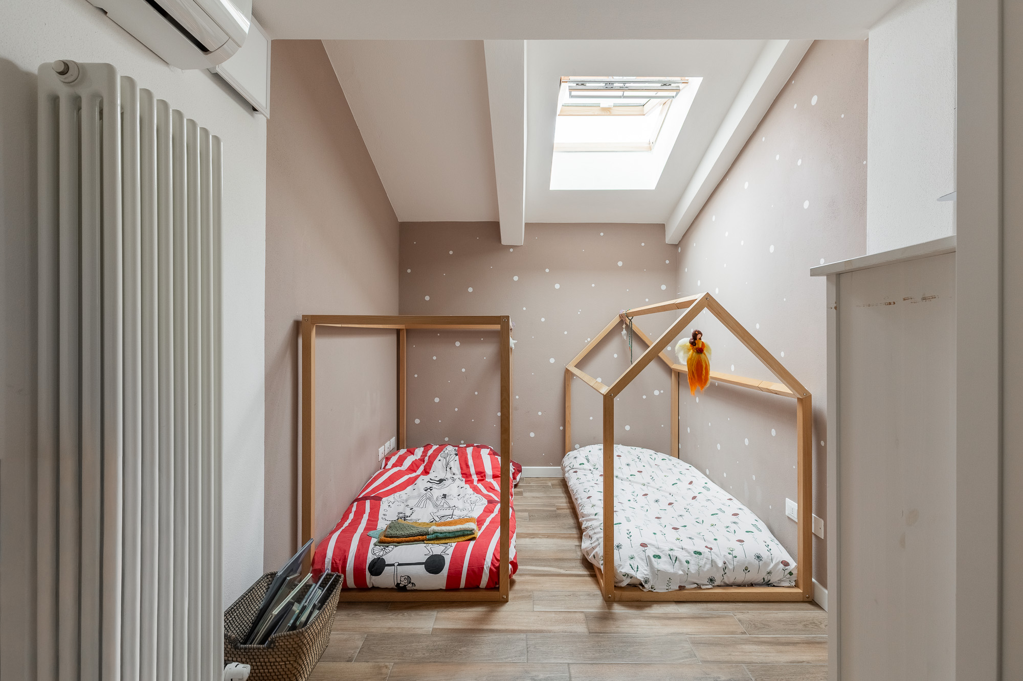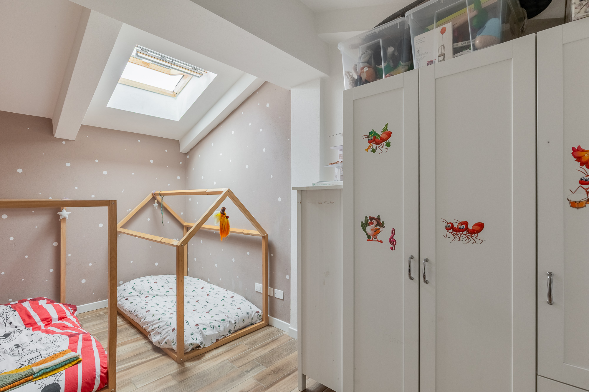 La casa è dotata di riscaldamento a pavimento, condizionatori con pompa di calore, tapparelle motorizzate e infissi in PVC con triplo vetro, per garantire un’elevata efficienza energetica e un ottimo isolamento termoacustico. All’interno dell’abitazione è presente anche un sistema di ottimizzazione della qualità dell’aria, che permette ai velux di aprirsi in automatico. Lo spazio cantina è utilizzato in una comoda casetta prefabbricata, ciclabile. Una soluzione moderna e funzionale, pronta da abitare.