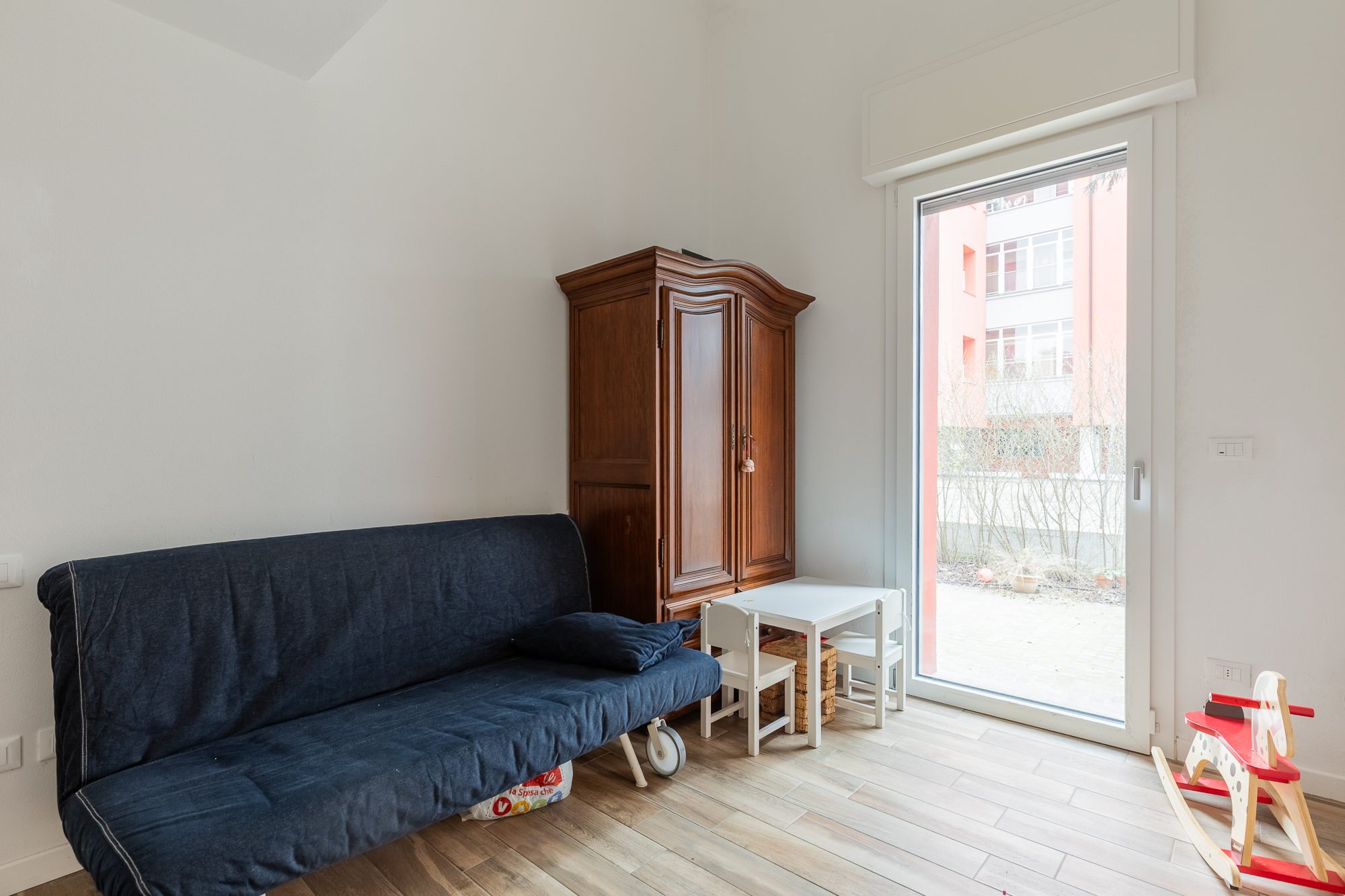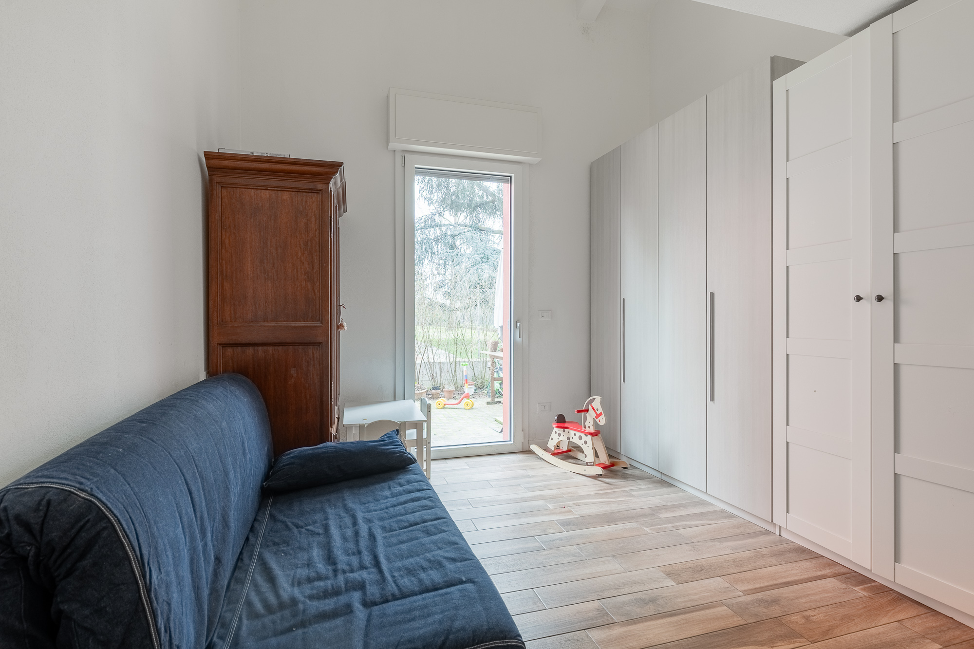 L’immobile si sviluppa su due livelli: al piano terra troviamo un ampio soggiorno con angolo cottura, una camera matrimoniale, un bagno, e due giardini privati pavimentati (34 MQ e 16 MQ), ideale per momenti di relax e grigliate all’aperto. Al primo piano sono presenti uno studio e un guardaroba, attualmente utilizzati come camere da letto, oltre ad un secondo bagno finestrato.