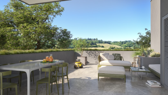 L’intervento sorge nel cuore di quello che sarà un nuovo comparto residenziale e commerciale, in una zona particolarmente servita e ben collegata, con ricche dotazioni di verde pubblico ed aree interne pedonalizzate. Un polmone a due passi dal centro cittadino costruito all’insegna dell’ecosostenibilità e delle ultime tecnologie di riduzione dei consumi e dell’impatto ambientale: impianto fotovoltaico con produzione eccedente i consumi, antisismica avanzata, alti indici di isolamento acustico, riscaldamento e raffrescamento con pompa di calore, ventilazione meccanizzata controllata per il filtraggio e la sanificazione dell’aria domestica, domotica di ultima generazione, sistemi anti-intrusione.
