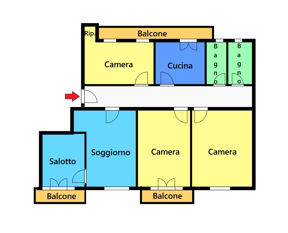L’immobile è posto al secondo piano, gode di ottima luminosità e dispone di tre balconi con affacci silenziosi e gradevoli. Gli ambienti si caratterizzano per ampie misure, pavimenti d’epoca ed essendo la casa da personalizzare, permette una riorganizzazione degli ambienti e relativo recupero fiscale.