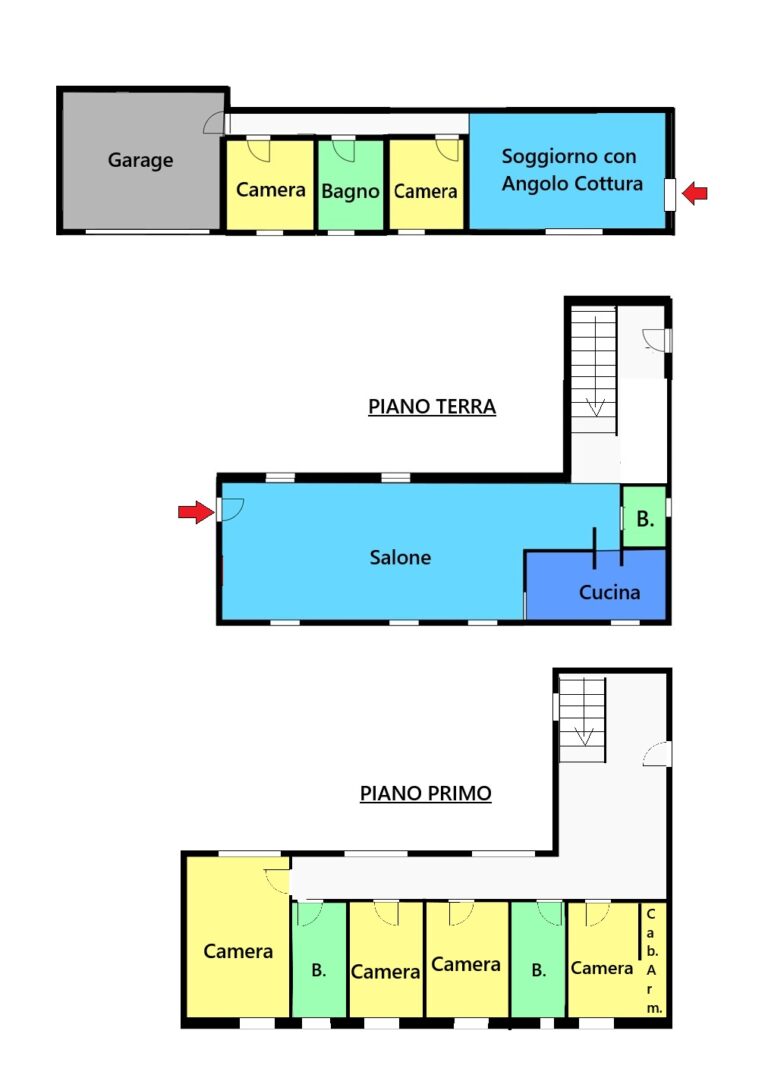 ingresso indipendente su ampissimo soggiorno, cucina abitabile, primo bagno e disimpegno. Al piano superiore troviamo disimpegno notte, camera matrimoniale, due bagni e tre camere doppie di cui una servita da cabina armadio.