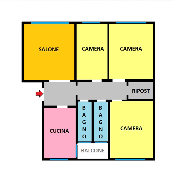 In zona residenziale tranquilla e servita, appartamento quadrilocale di 112 mq, situato al nono piano, con doppio affaccio.